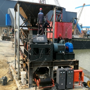 大型對(duì)輥式河卵石制砂機(jī)安裝現(xiàn)場(chǎng)